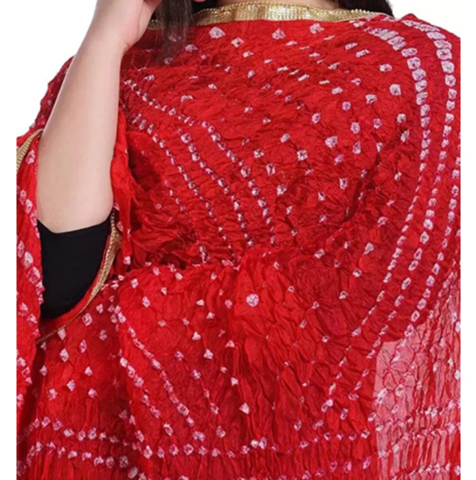 Introducing the Silk Bandhani Dupatta, made from the finest quality material. The dupatta is designed to be lightweight and breathable, making it perfect for any season. It features a beautiful plain pattern with intricate bandhani detailing for an elegant look. The dupatta is also fully washable for easy maintenance and care. This dupatta is perfect for those who want to add a touch of sophistication to their wardrobe. It is ideal for special occasions such as weddings, parties, and festivals. The dupatta also makes a great gift for family and friends. It is available in customized sizes, so you can get the perfect fit. The Silk Bandhani Dupatta is sure to make a statement. With its intricate detailing and high-quality materials, it is sure to stand out in any wardrobe. It is an ideal choice for anyone looking for a classic and timeless piece of apparel.